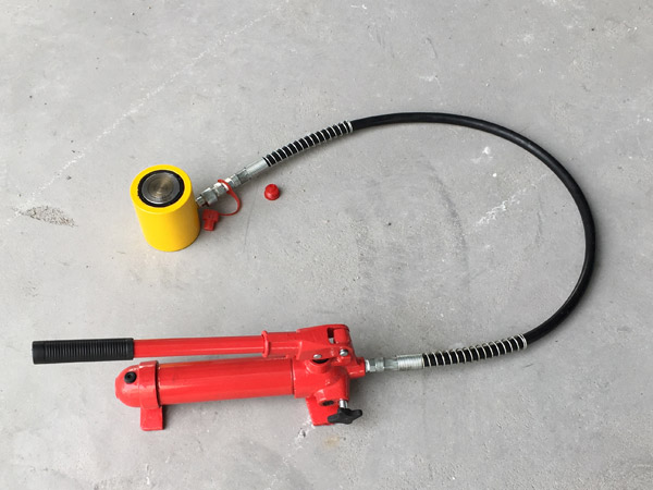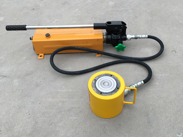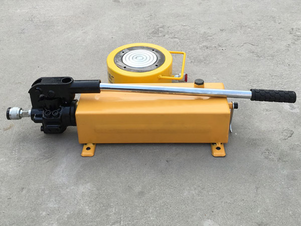 8、使用時(shí)先將手動(dòng)泵的快速接頭與頂對(duì)接,然后選好位置,將油泵上的放油螺釘旋緊,即可工作。欲使活塞桿下降,將手動(dòng)油泵手輪按逆時(shí)針方向微微旋松,油缸卸荷,活塞桿即逐漸下降。否則下降速度過(guò)快將產(chǎn)生危險(xiǎn)。