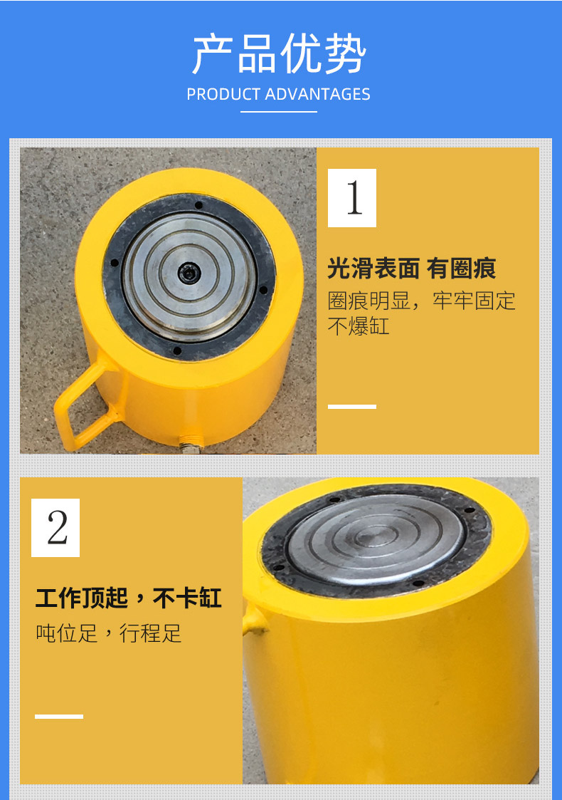 6、千斤頂將重物頂升后,應及時用支撐物將重物支撐牢固,禁止將千斤頂作為支撐物使用。如需長時間支撐重物請選用CLL自鎖式千斤頂 。